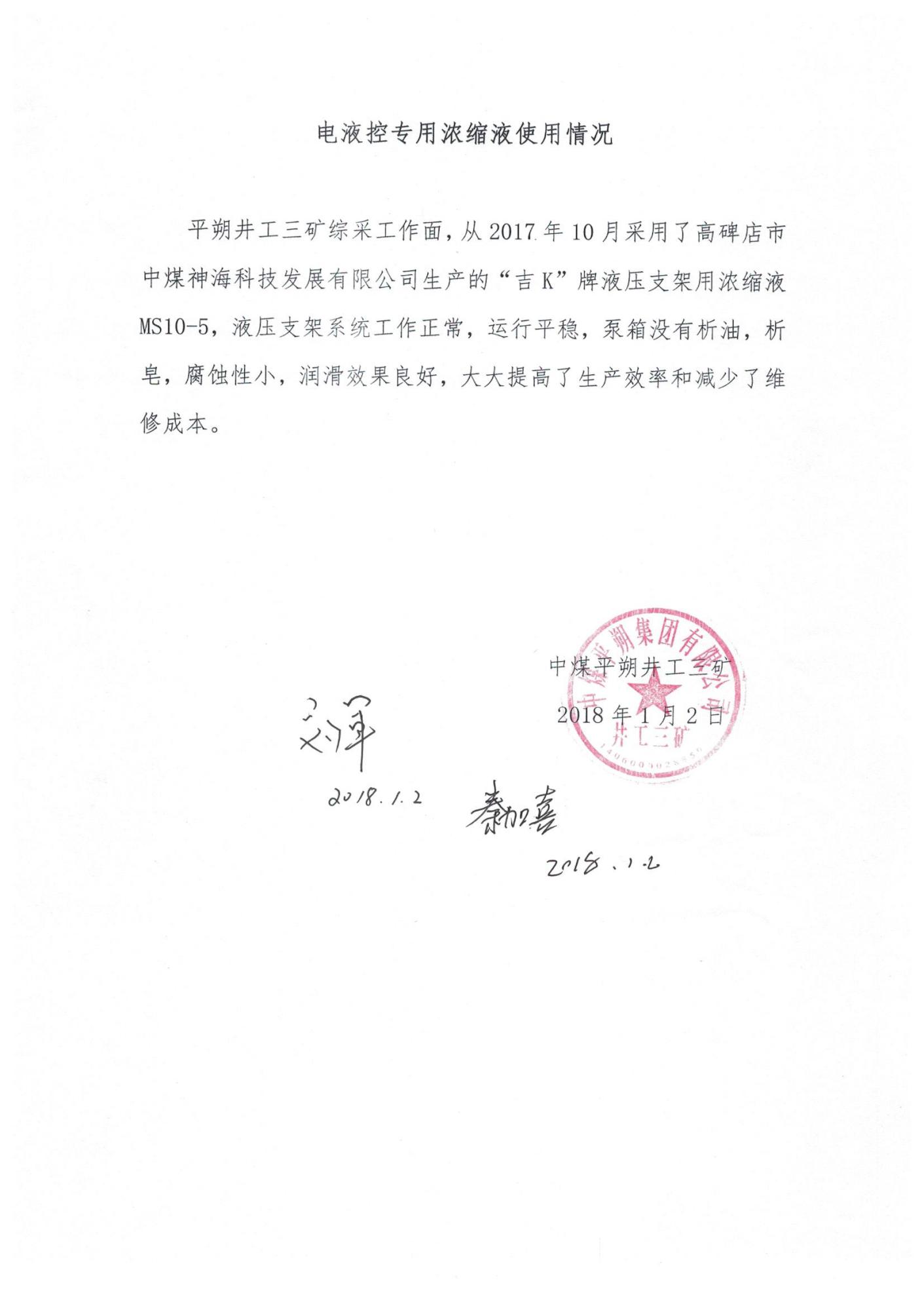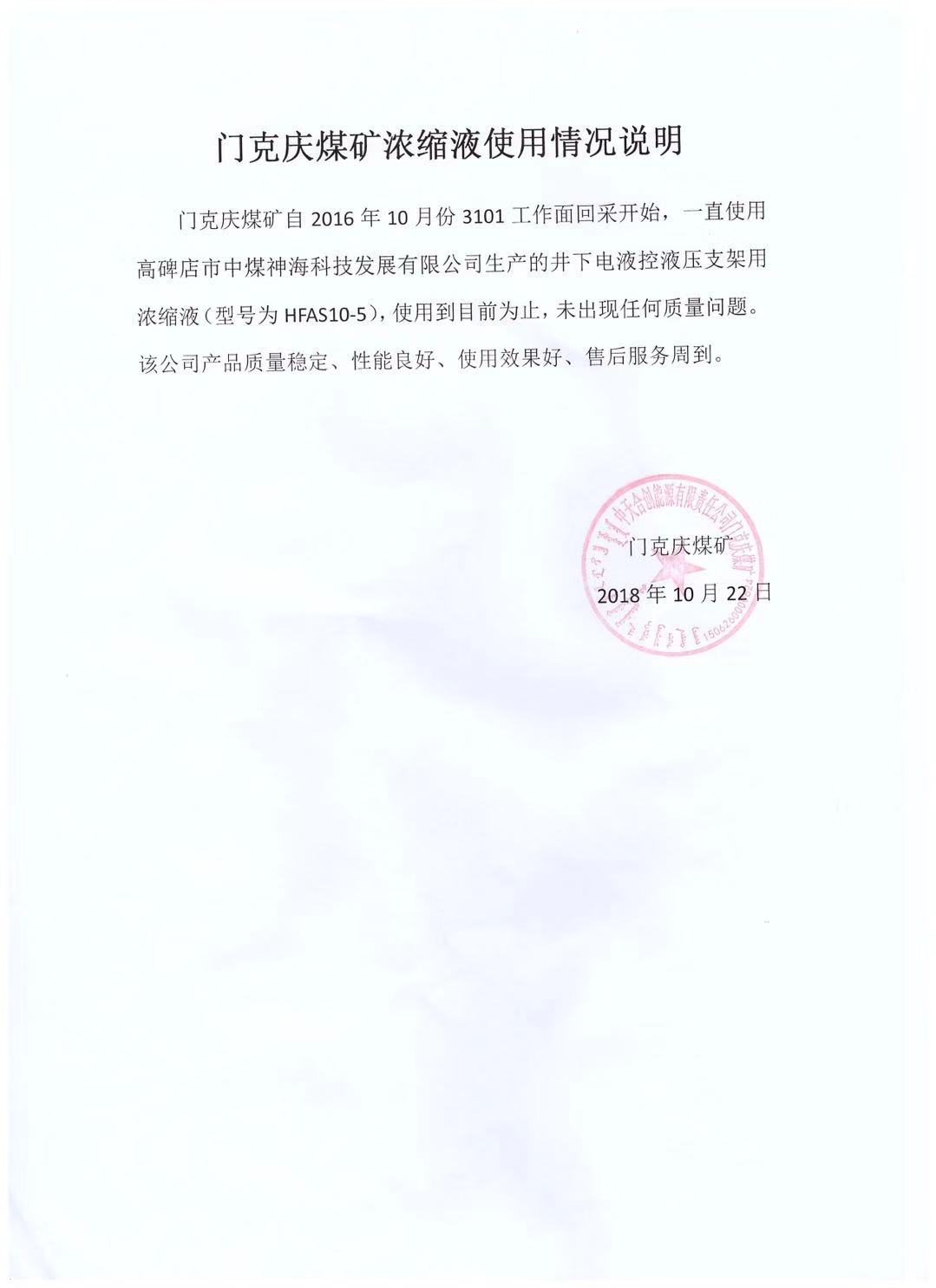目前我公司生產(chǎn)的液壓支架濃縮液、乳化油、防凍液、切削液產(chǎn)品已經(jīng)在中國中煤能源集團(tuán)有限公司、中天合創(chuàng)能源有限責(zé)任公司、鄂爾多斯市伊化礦業(yè)資源有限責(zé)任公司、中煤平朔集團(tuán)有限公司、華能集團(tuán)、同煤集團(tuán)、三一重型裝備有限公司、鄭煤機(jī)集團(tuán)股份有限公司、神華新疆能源有限公司、神華寧夏煤業(yè)集團(tuán)有限責(zé)任公司等大型煤機(jī)廠、機(jī)加工及煤礦廣泛應(yīng)用,產(chǎn)品質(zhì)量、售后服務(wù)贏得客戶認(rèn)可。